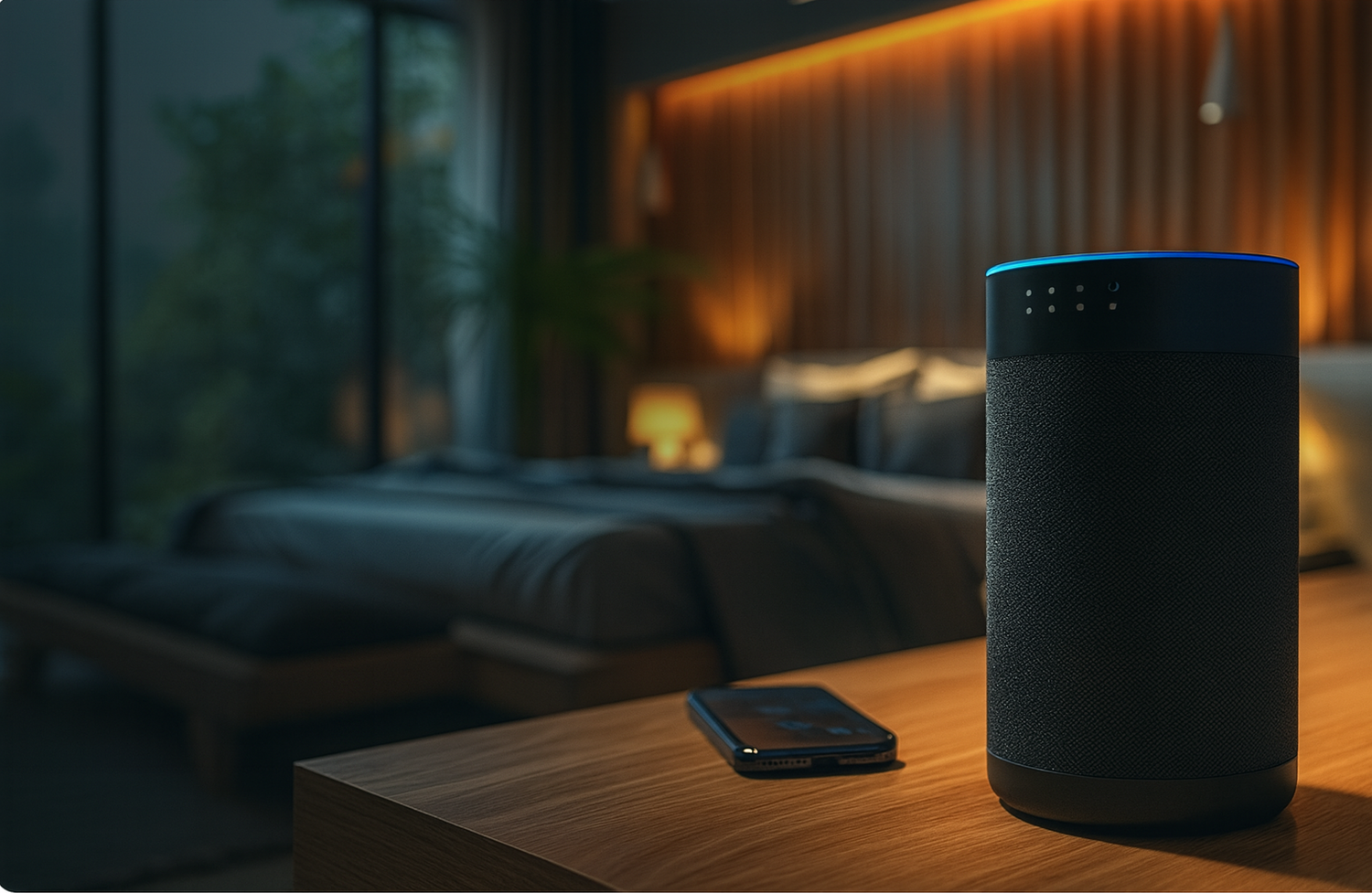 Gerencie iluminação, temperatura e automações em tempo real com design moderno e interface intuitiva.